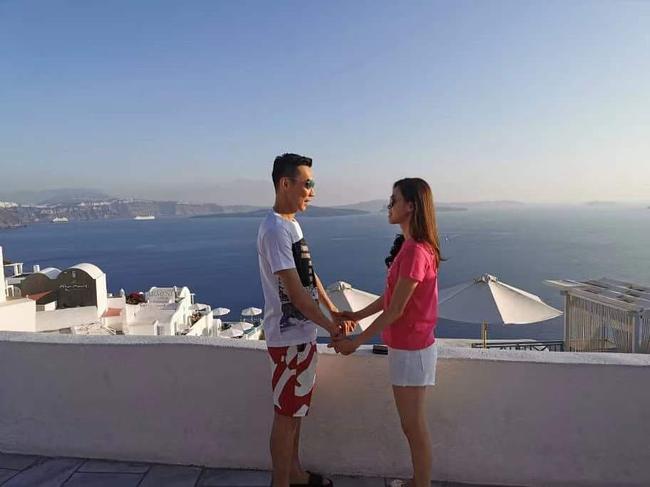 在脸书写道:迟来的圣托利尼承诺,迟到好过没到@黄妙珠之余,还写下浪漫情话:这里,用蓝与白刻画你的记忆,这里,是每一对恋人向往的国度;说到做到,我们在爱琴海前来个浪漫约会。
